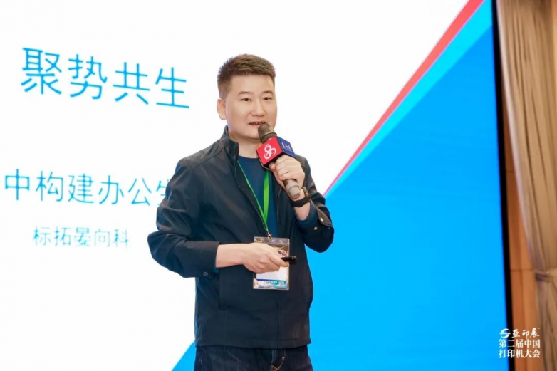 此外,浙江沧田打印机国内营销总经理第五宏军从两个维度探索了打印机国产化之路。介绍了中国OA发展历程、国产化开发之路和对未来几年的市场看法。